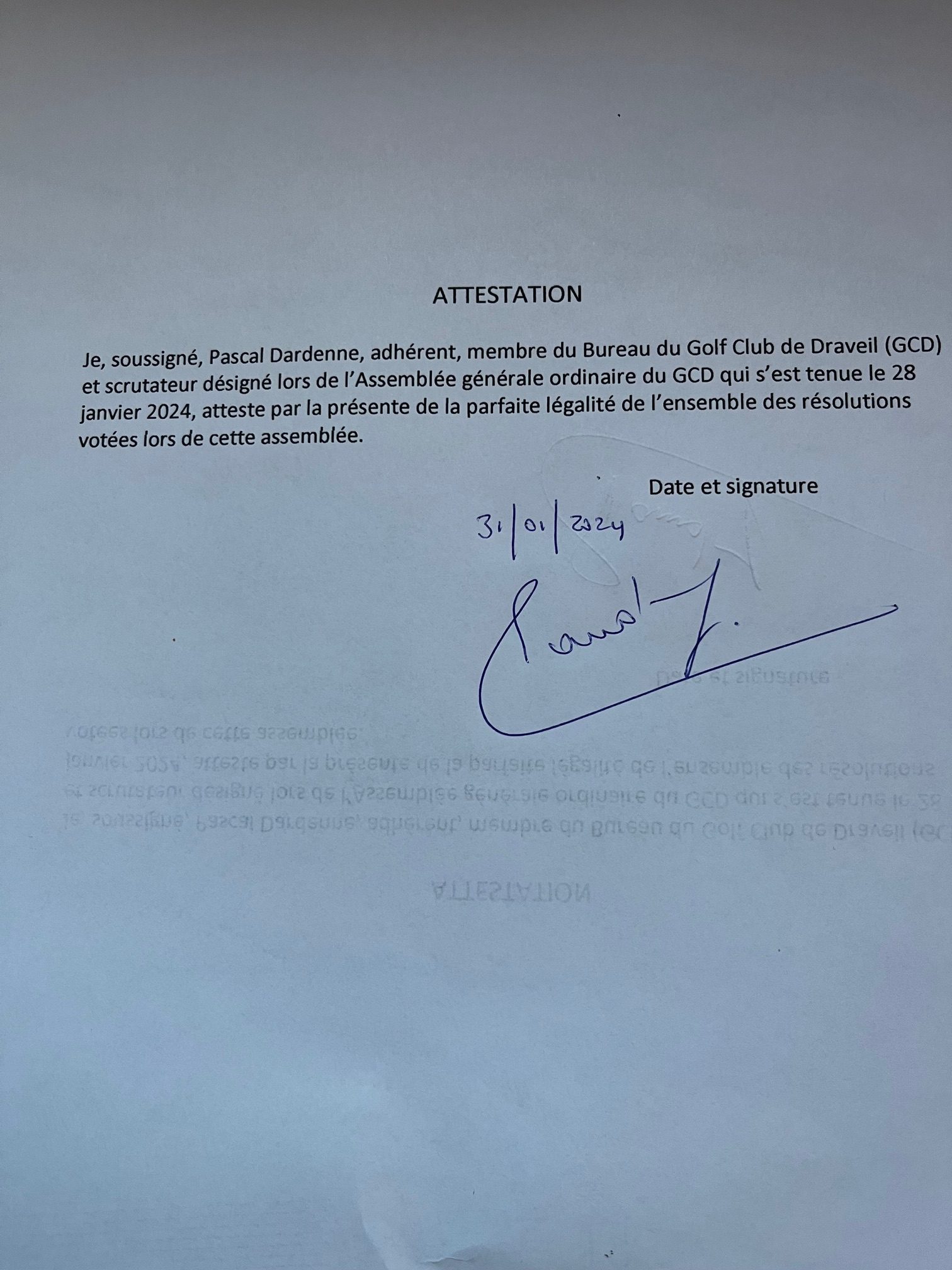 L’assemblée Générale Ordinaire du Golf Club de Draveil se tiendra le